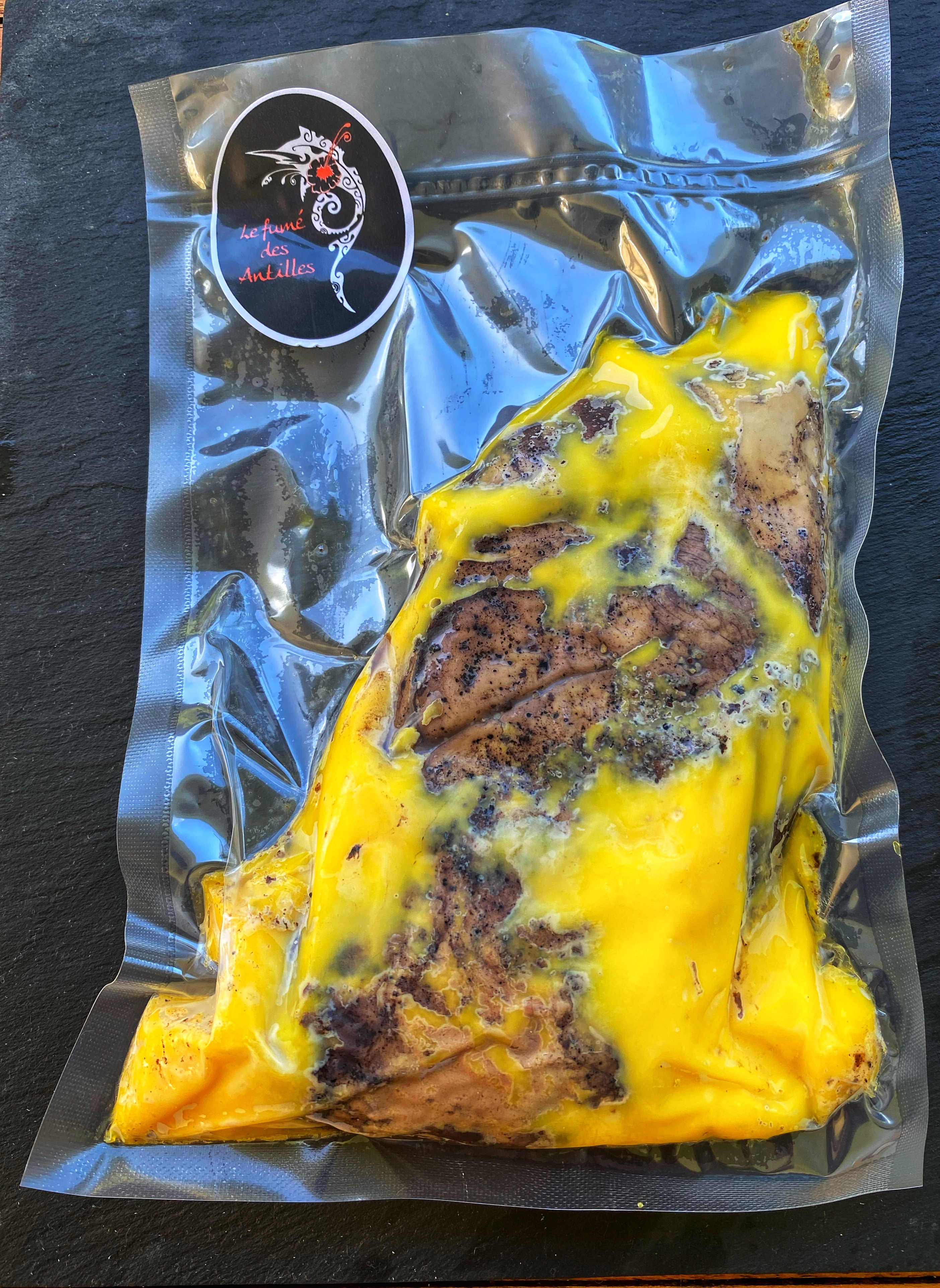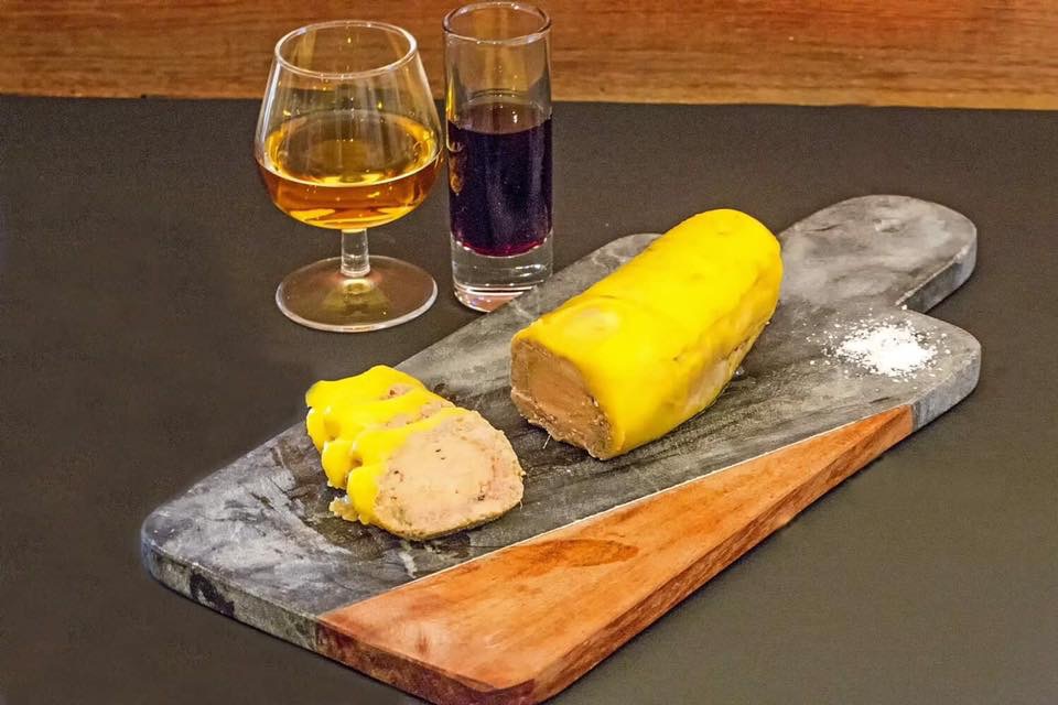 Foie gras de canard au porto et rhum vieux, fumé au foudre de chêne ayant servi à la maturation de rhum martiniquais