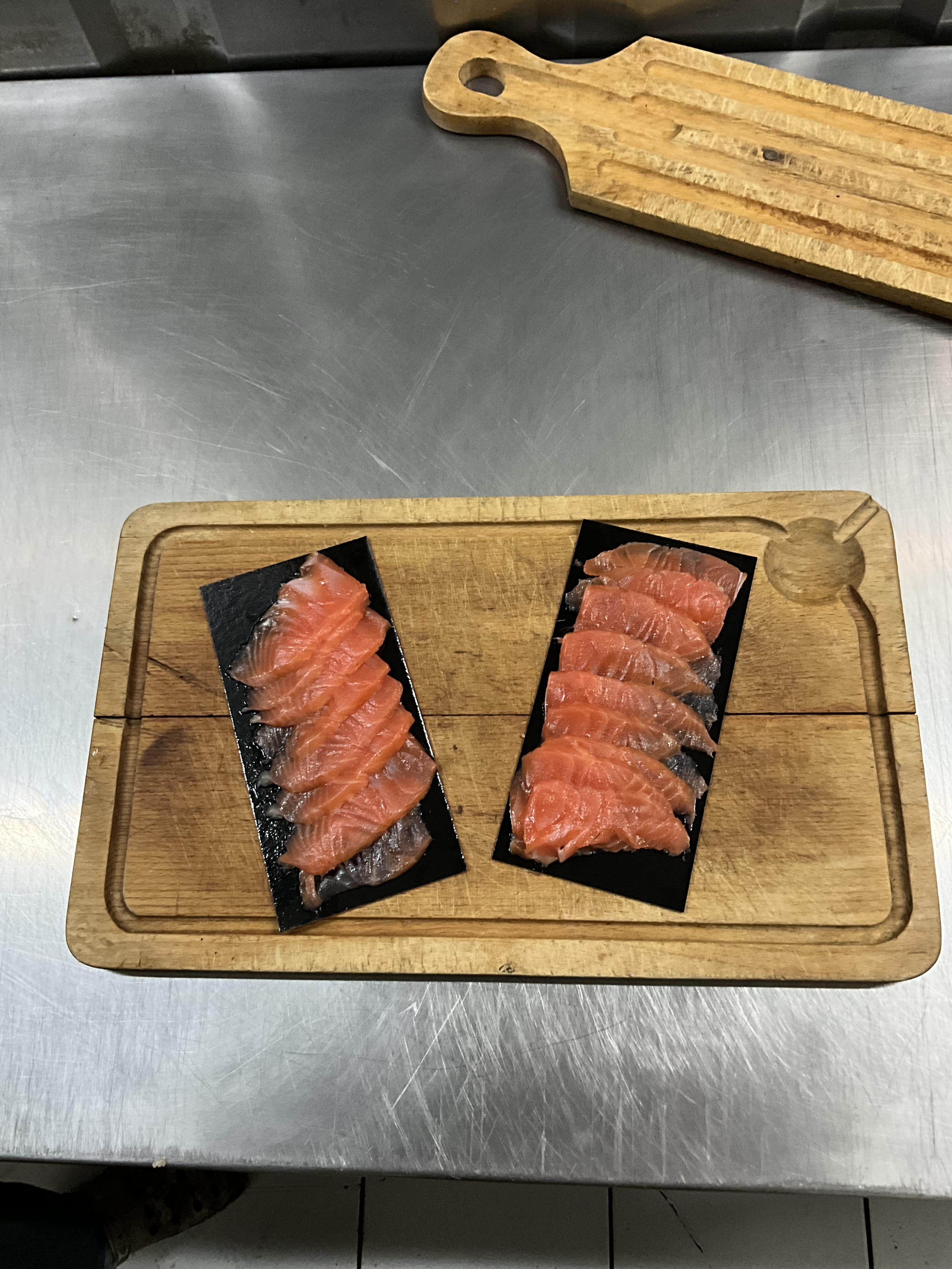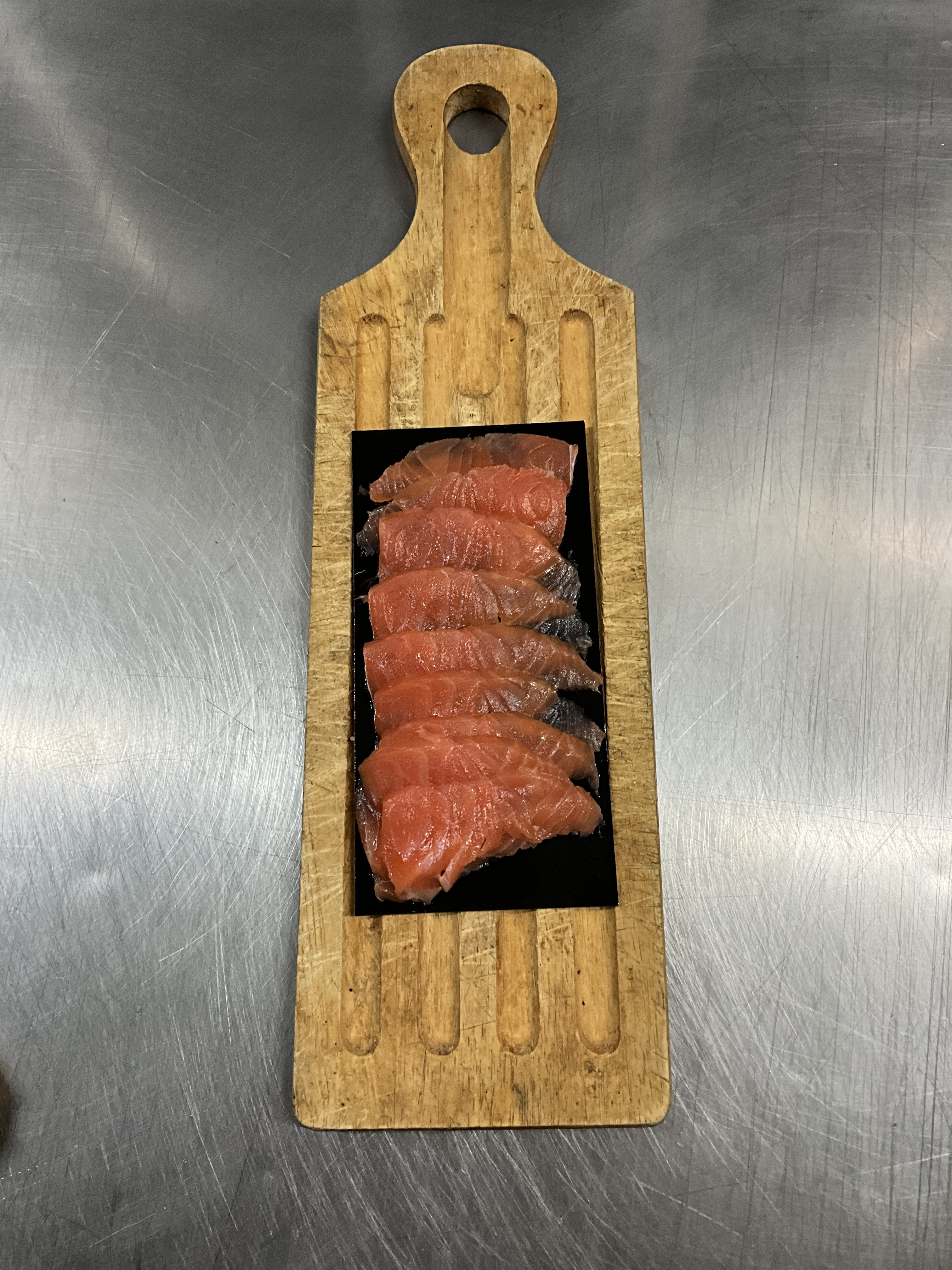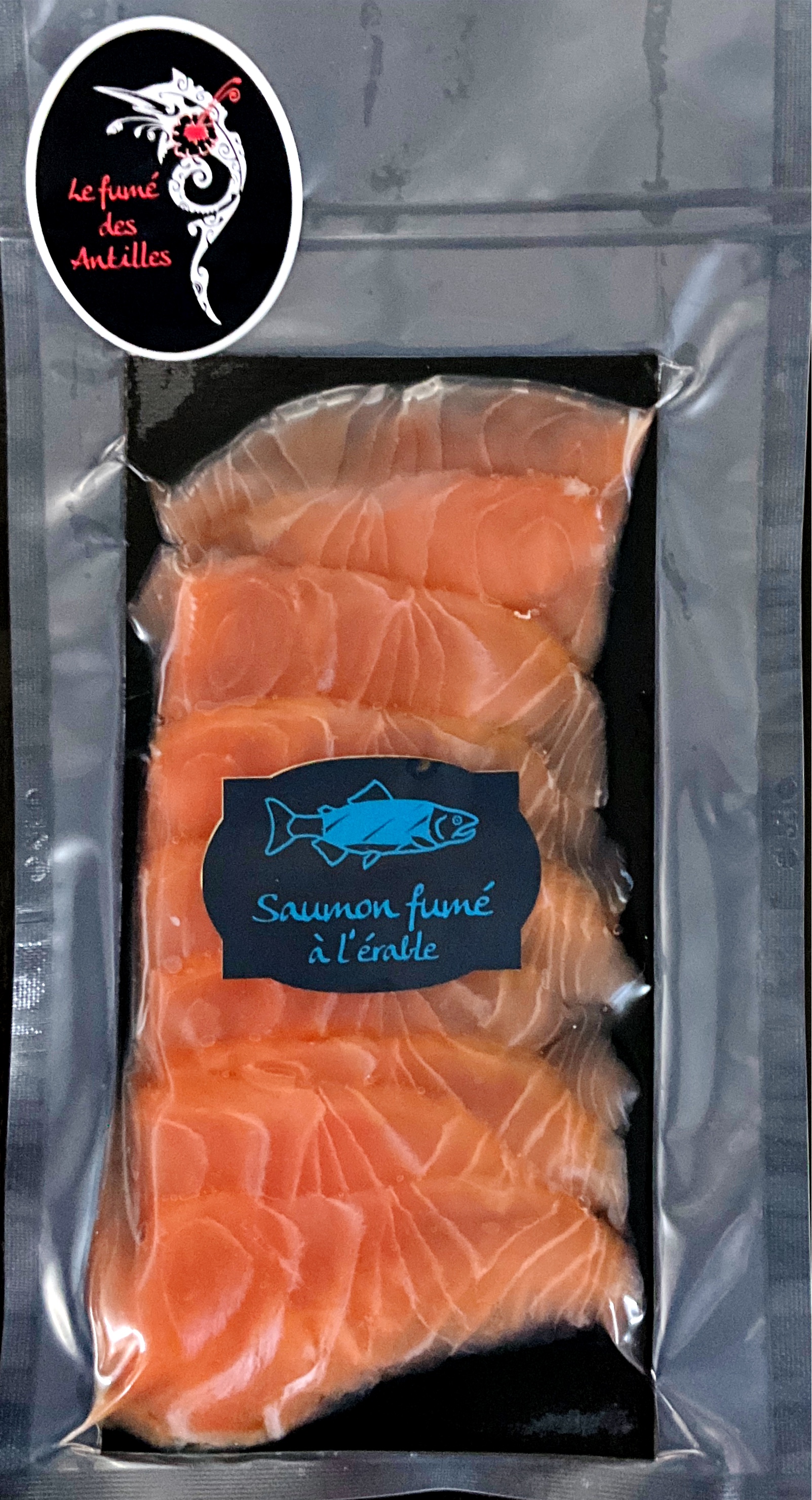 Saumon de l'atlantique (Salmo salar) élevé en Norvège et fumé en Martinique dans notre atelier à l'érable et épicé à la coriandre graine